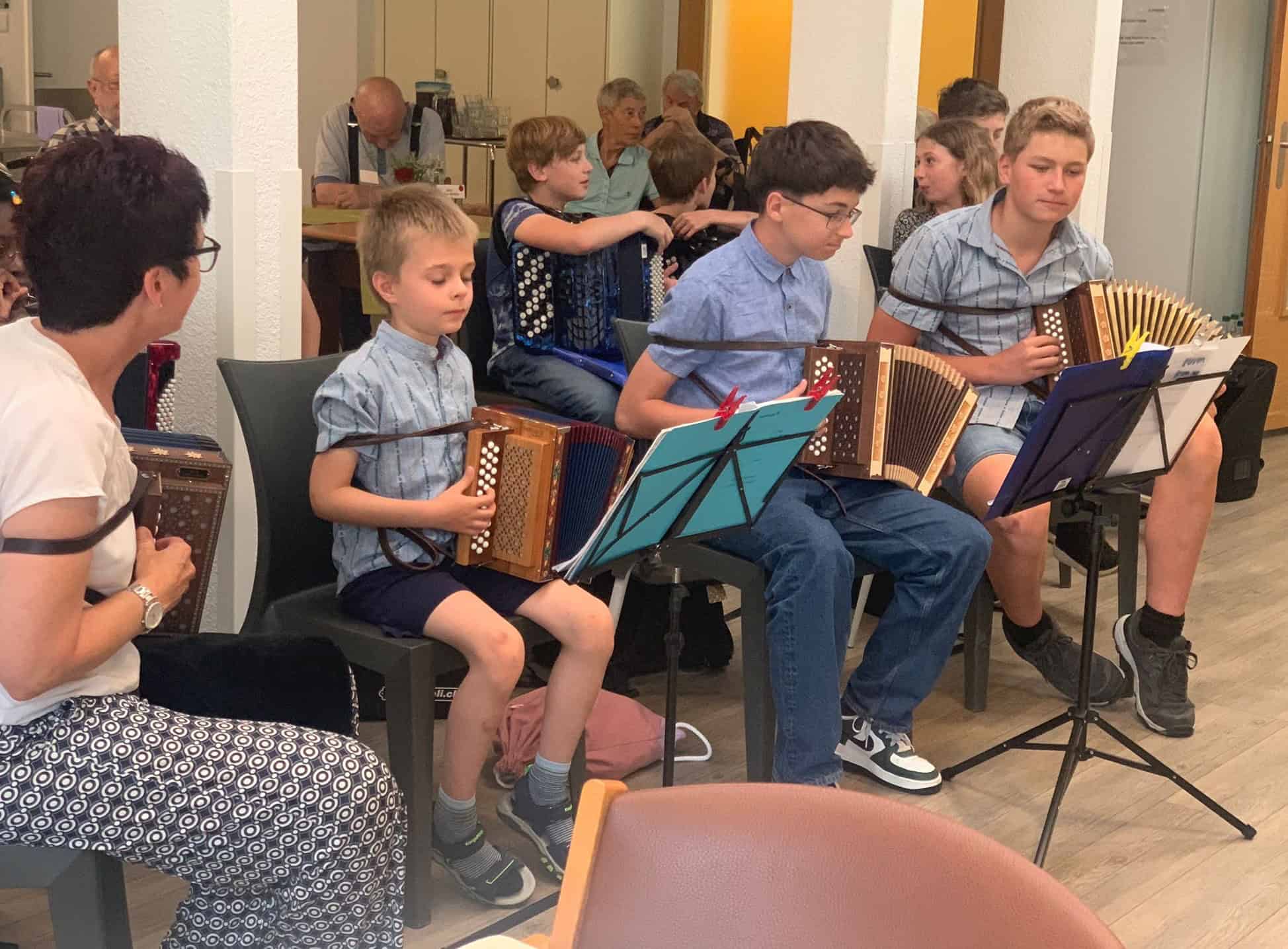 Akkordeon und Schwyzerörgeli musizierten unter der Leitung von Ursi Cimino im Altersheim Sonnenberg.
