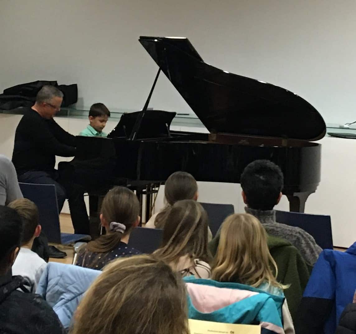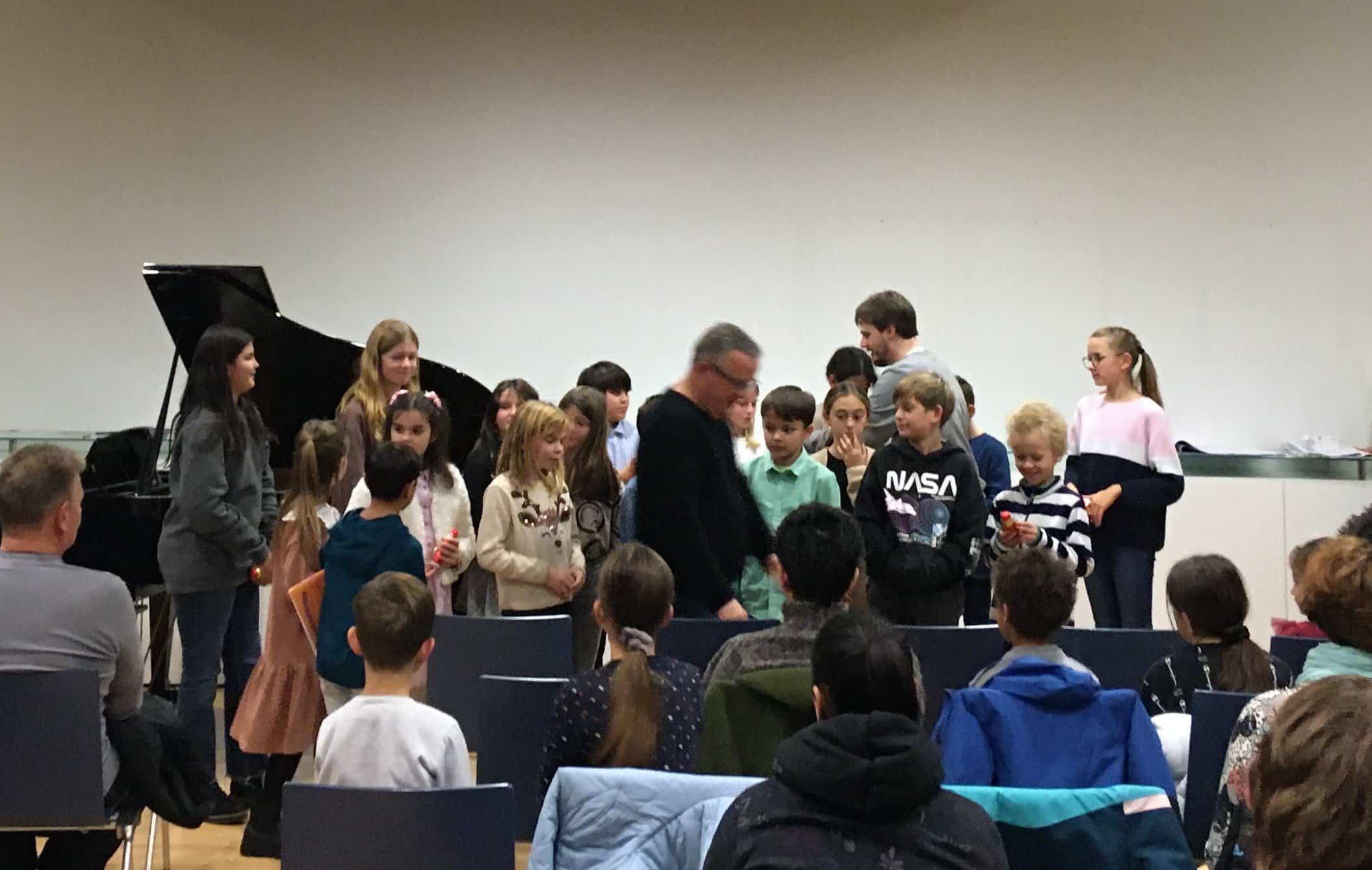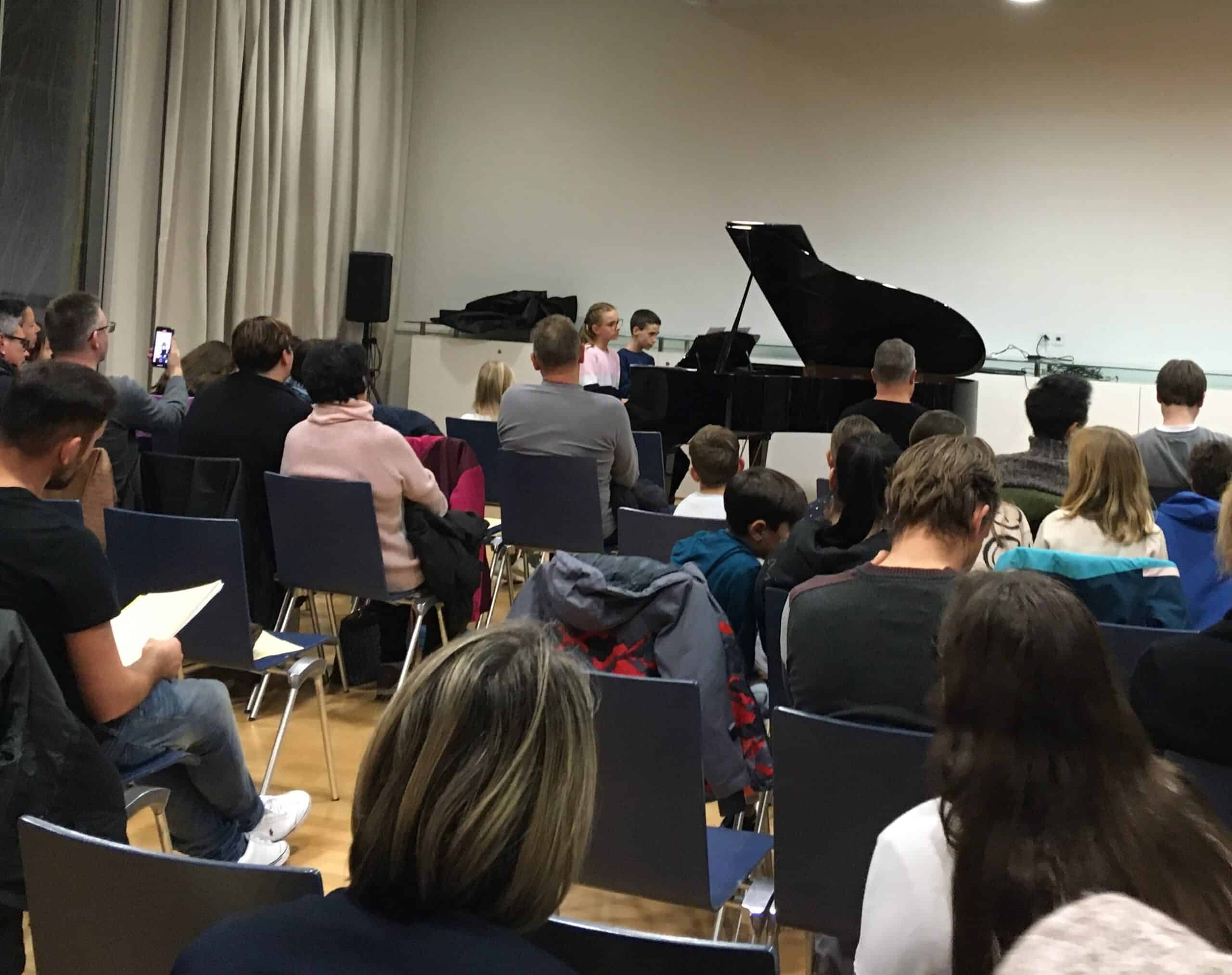 Am Dienstag, dem 22. November 2022 fanden sich viele kleine und grosse Klavierspieler und Klavierspielerinnen in der Aula Breite ein, meist begleitet von Eltern, Grosseltern und Bekannten. Es erklang stilistisch sehr vielfältige Musik, von Kinder- und Volksliedern über Popsongs zu klassischen, von einfachen zu ziemlich schwierigen Stücken. Es zeigte sich, dass die Schüler und Schülerinnen sehr gut und viel geübt hatten und ihre Stücke meist ohne Patzer, wenn auch teilweise mit etwas Nervosität, vorspielen konnten. Die Zuhörenden sparten denn auch nicht mit Applaus.