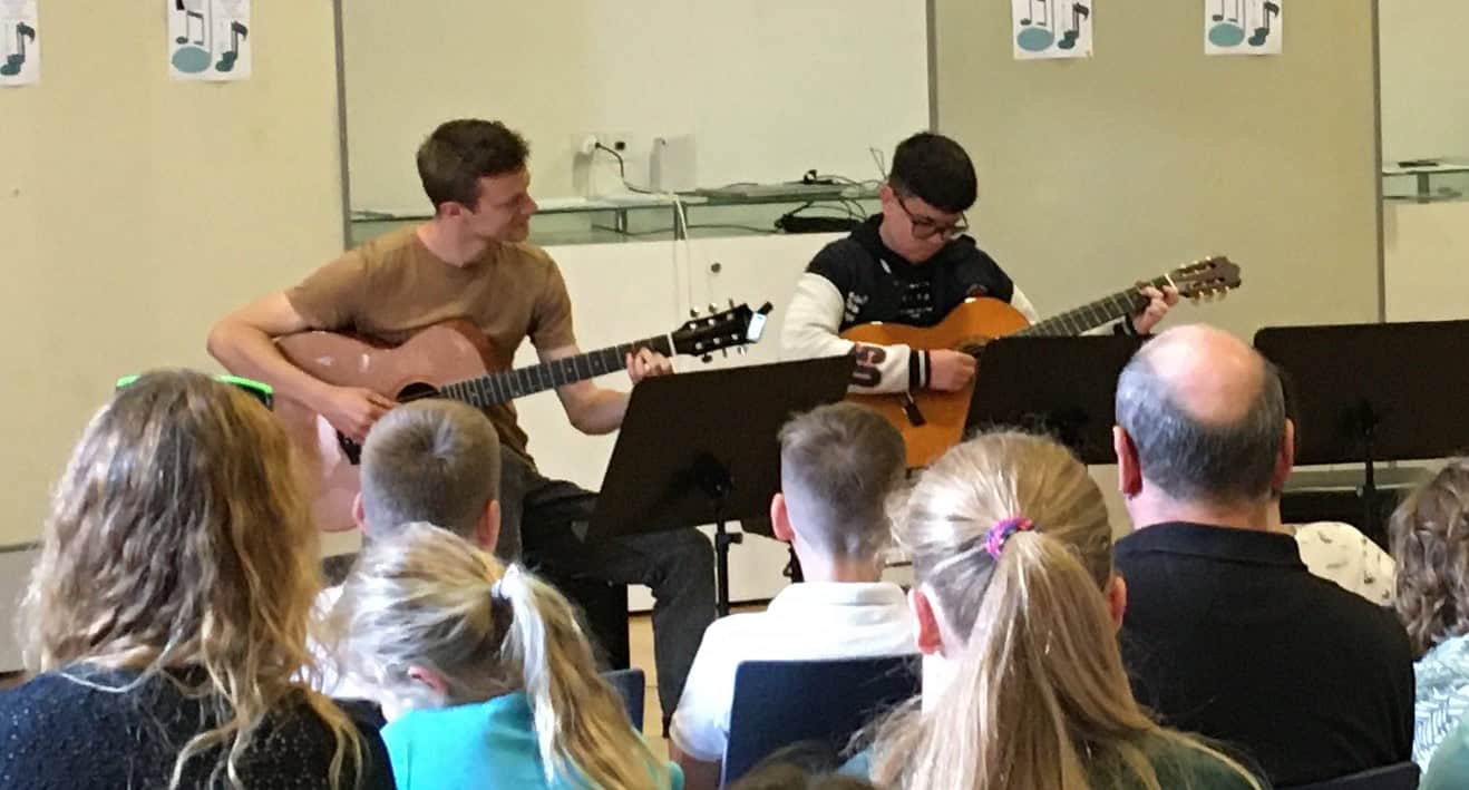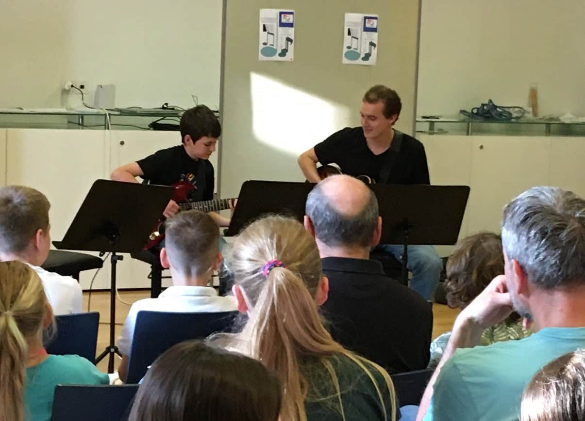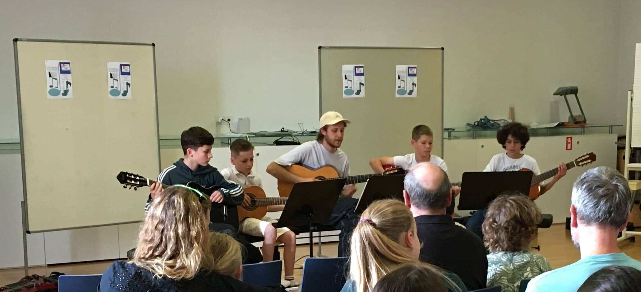 Am 5. Juni 2024 trafen sich die 3 Gitarrenlehrer der Musikschule Reinach, Severin Felix, Samuel Welter und Micha Zumsteg zu einem Vorspiel für ihre Gitarrenschüler und -schülerinnen.