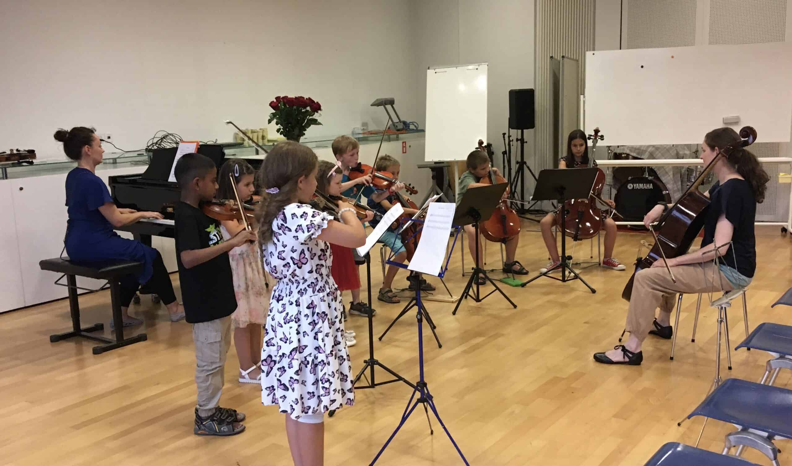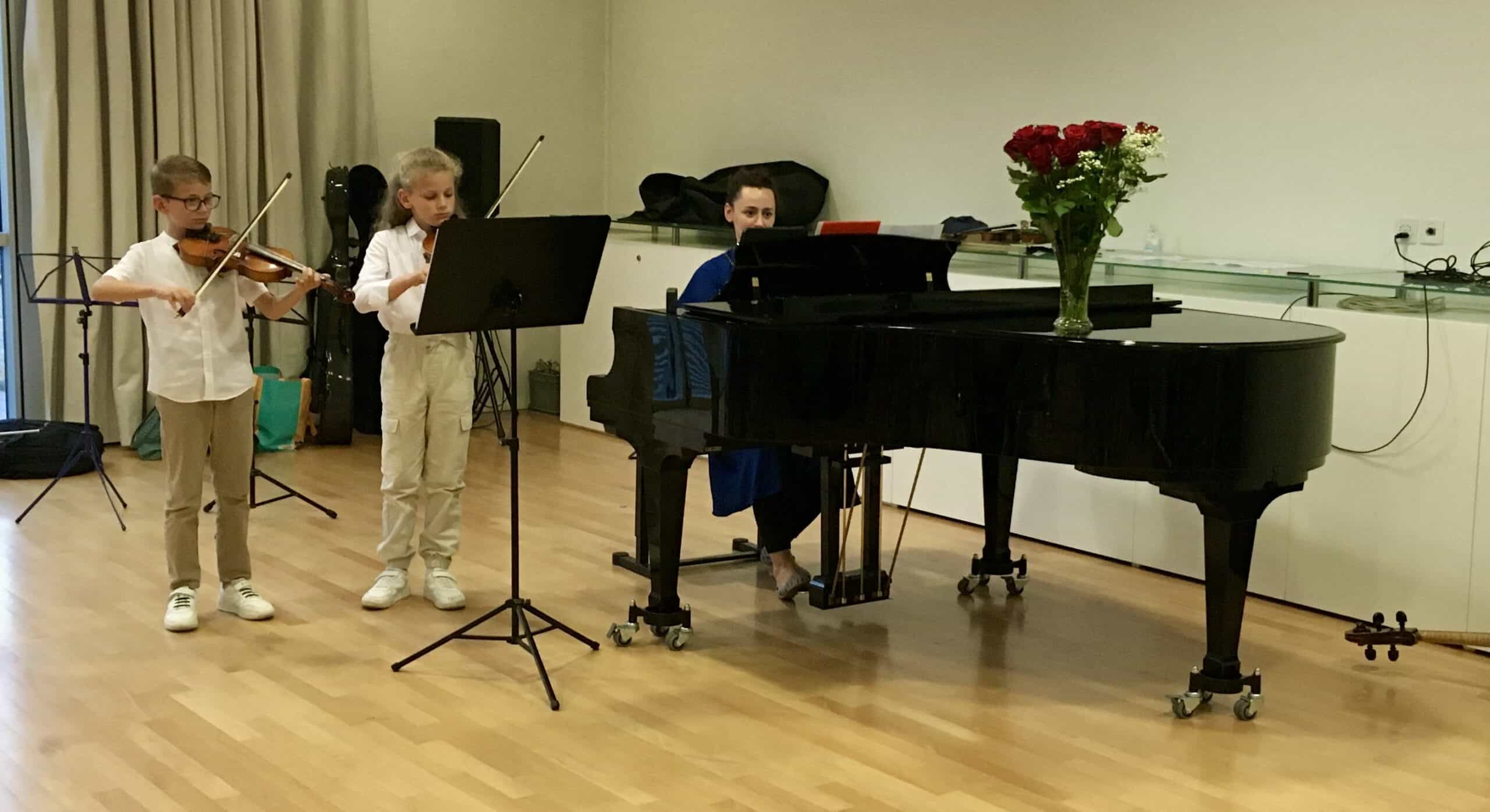 Ein kleines, aber feines Vorspiel führten die beiden Lehrpersonen, Agata Michalec Stahl (Violine) und Christina Schmidt (Orchester) durch. Das Orchester der Jüngeren spielte zu Beginn drei kleine Stücke und zeigte damit, wie gut das Zusammenspiel schon nach kurzer Zeit tönen kann. Die ViolinschülerInnen spielten kurze bis längere Stücke, begleitet von Frau Michalec Stahl am Klavier oder an der Geige. Bereits SpielerInnen, die erst im letzten Sommer mit dem Unterricht angefangen haben, konnten mitwirken.